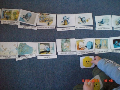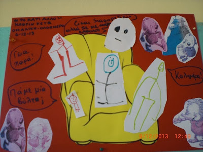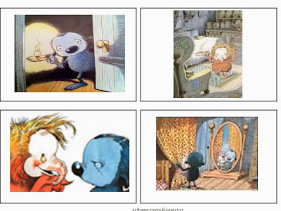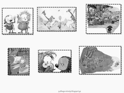 Μία σημείωση: εγώ πρώτα έδωσα εικόνες στα παιδιά χωρίς να τους διαβάσω το παραμύθι, τις συζητήσαμε, φτιάξαμε τη δική μας ιστορία κι έπειτα ακούσαμε τι έγραψε η συγγραφέας.